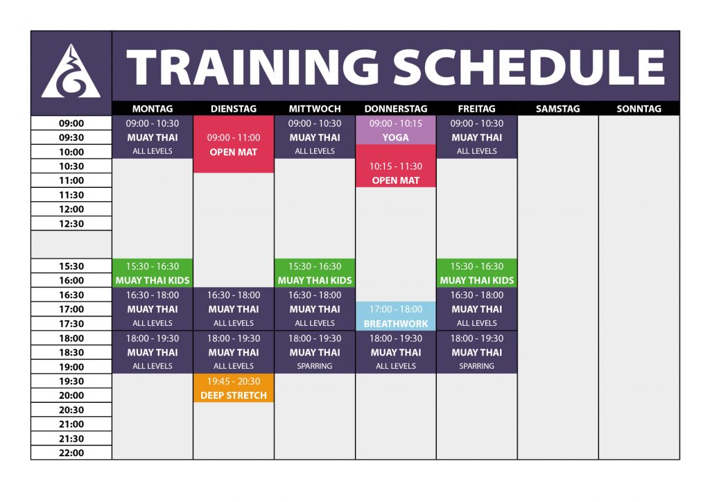 Dich erwarten über 12 Muay Thai Kurse pro Woche, verteilt auf Vormittag und Abend – ideal für jedes Zeitfenster.